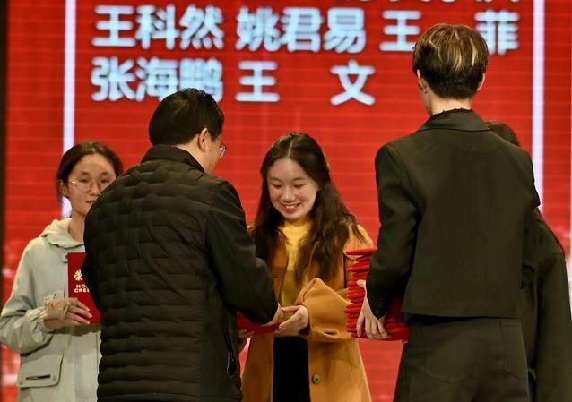 随后,宋丽智副院长为2023年在科研创新活动中取得优异成绩的同学颁奖。同时,大屏幕播放的短片将我院学子进行科研创新活动照片、视频串联起来,向大家展示了经院学子在创新实践上的风采。
