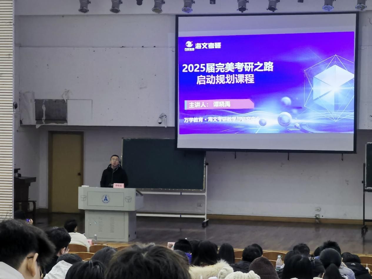 (学生记者 李抒谚)为切实做好经济学院2021级本科生职业生涯规划工作,帮助同学们明晰考研考公形势,做好考研考公规划,经济学院2021级本科生考研考公指导会于1130日下午4时在我校南湖校区文澜楼111室顺利举行。此次指导会特邀万学教育海文考研湖北分校校长谭晓禹,优仕德教育公考负责人、资深公考咨询师饶翔担任主讲人,经济学院2021级本科生辅导员陈远瞻主持会议,全体经济学院2021级本科生到场参会。