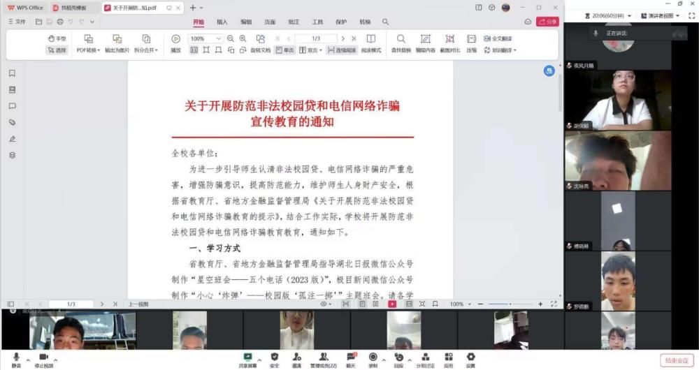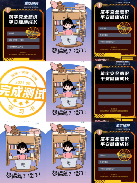 9月25日至26日,根据学校《关于开展防范非法校园贷和电信网络诈骗宣传教育的通知》,2023级本科生有序开展了大学生防范电信网络诈骗、非法校园贷主题教育活动,各班组织同学们开展线上班会、观看诈骗动画、完成线上学习打卡、感受高频骗术场景模拟。同学们纷纷表示,通过此次学习认识到了非法校园贷和电信诈骗的危害性,会提高警惕,提升识骗识诈能力。