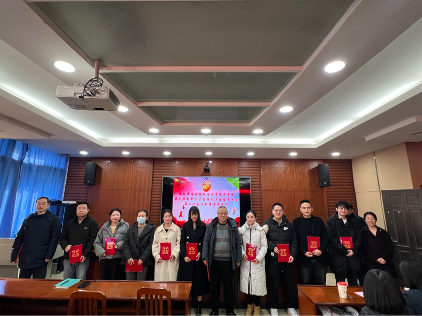 大会对2023年在科研、教学面有突出表现的教师进行了表彰。院党委书记刘刚充分肯定了本年度学院及工会的工作,向新当选的工会委员、获奖教师表示祝贺,指出在全体教职工的共同努力下,学院在学科建设、专业建设、学术研究等方面取得了优异成绩,希望全院教职工在新的一年中凝心聚力、接续奋斗,共同谱写经济学院发展的新篇章!