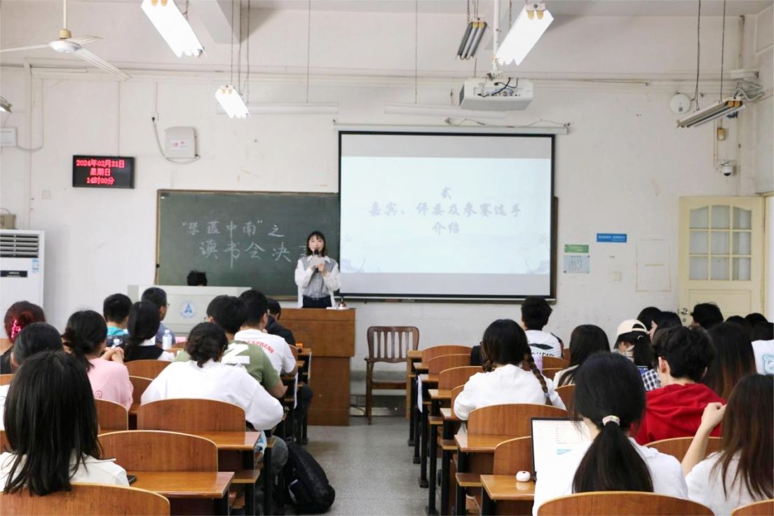(学生记者 朱佳颖 摄影 龚美晨)鱼离水则身枯,心离书则神索。为了丰富同学们的课余生活,提高在校学生的文化修养和综合素质,经济学院第十届“学蕴中南”读书会决赛于3月31日14时在我校南湖校区文澜楼208室顺利举办。本次活动由经济学院学生会学术部主办,经济学院陈立兵副教授和新国者传媒总经理、新潮读书会总经理黄国新担任大赛评委,向宇璐同学担任主持人,经济学院2021、2022级各班代表到场参会。