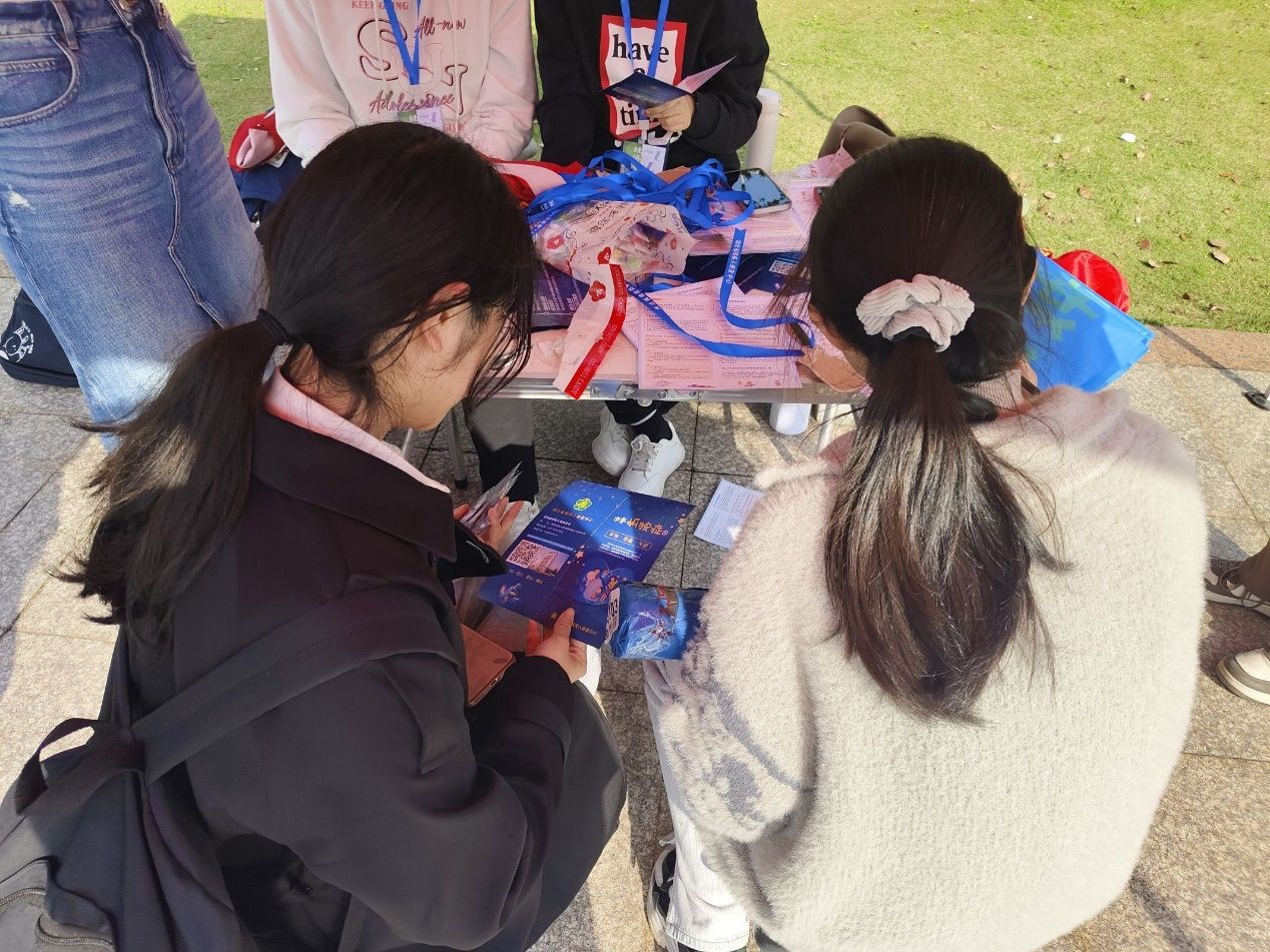 活动过程中,部分成员去路边、食堂、教学楼等处流动宣传,向同学们介绍孤独症这一特殊群体,向他们分发传单,有的同学甚至多要了几份宣传单准备拿回去跟室友分享,让更多的人了解到孤独症这一特殊的群体。在书写祝福的过程中,志愿者们也为同学们送上了孤独症孩子们亲手做的手串,同学们都对手串爱不释手,认为这是一份意义非凡的礼物。