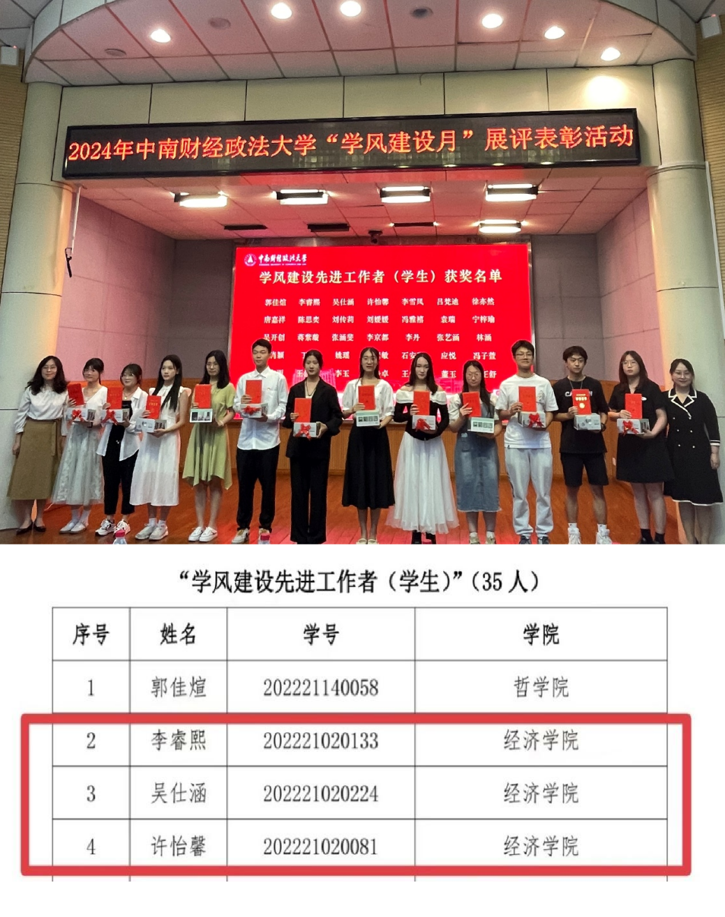 (图3:李睿熙、吴仕涵、许怡馨同学荣膺“学风建设先进工作者(学生)”称号)