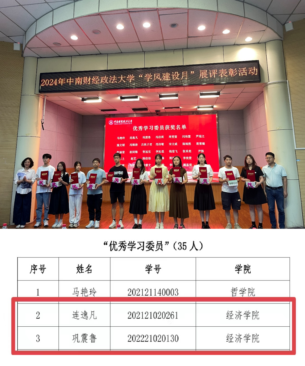 本次“学风建设月”展评表彰活动中,经济学院涌现出一批学风建设先进集体和先进个人。在集体奖项中,我院滨湖1栋432、滨湖1栋501、滨湖1栋442宿舍团结友爱、勇于奋斗,充分发扬朋辈互助精神,荣膺“优良学风宿舍”的荣誉。他们通过建立“寝室公约”等方式,督促宿舍成员作息规律,加强宿舍管理,宿舍成员之间相处融洽,互帮互助,共同进步,营造积极向上、务实奋进的学习氛围。他们刻苦学习,勇于探索,积极实践,努力掌握现代科学文化知识和专业技能,充分展现了中南大宿舍的优良学风。