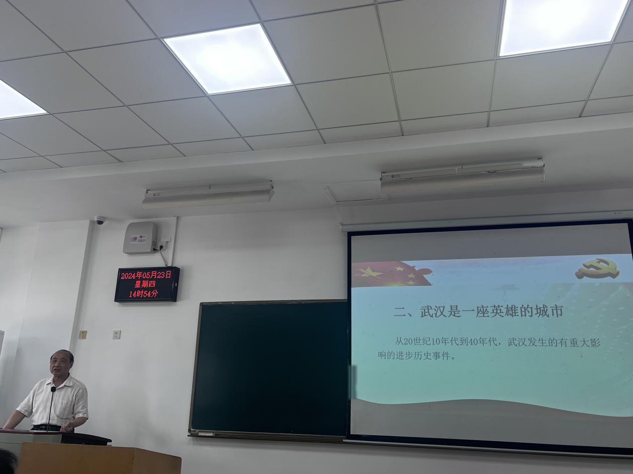 胡江滨教授从“中国人民解放军第四野战军先遣兵团南下拉开了解放武汉的序幕”“武汉是一座英雄的城市”“武汉解放的重大意义”三个方面来阐述解放武汉的过程以及历史意义。