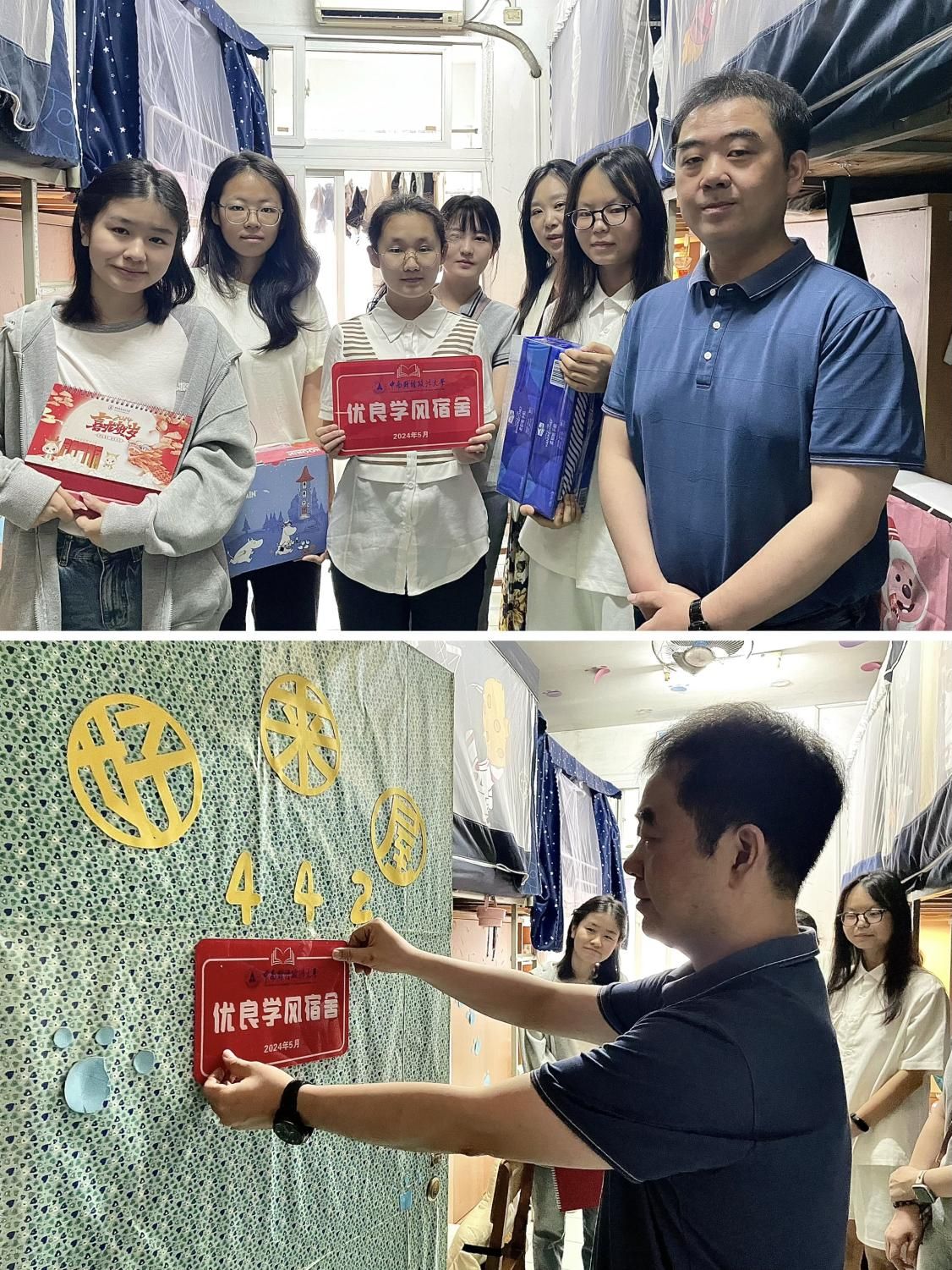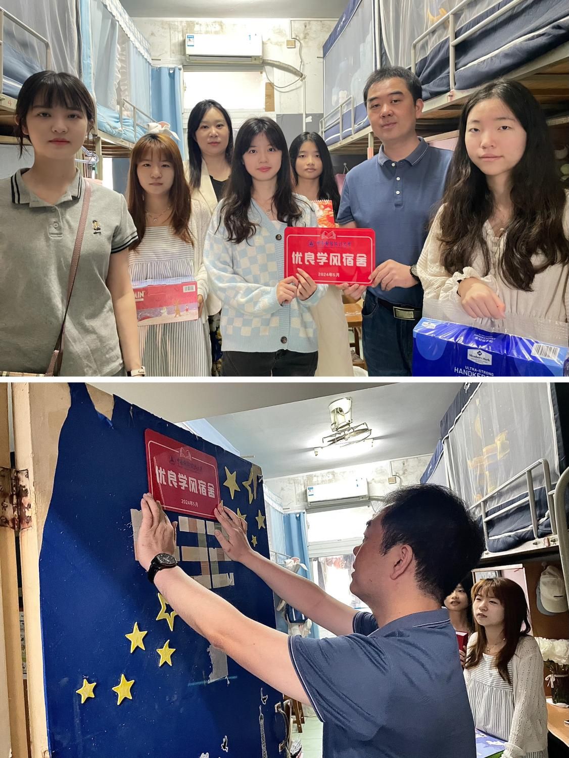 (通讯员 包伦娜 学生通讯员 吴仕涵)为进一步加强学风建设,营造积极向上的寝室文化氛围,6月5日上午,经济学院党委副书记俞凡、学生工作办公室主任周琼、2023级本科生辅导员包伦娜前往南湖校区滨湖宿舍,为“优良学风宿舍”授牌,表彰在学风建设中表现突出的宿舍集体,进一步营造良好育人氛围,贯彻落实立德树人根本任务。