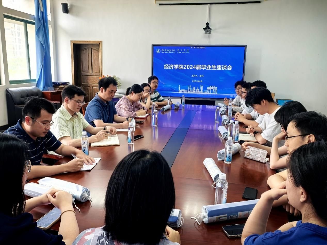 2024年6月18日下午,经济学院2024届毕业生座谈会于文泉南会议室207召开。经济学院副院长张鸿武、院党委副书记俞凡、国际经济学系主任潘安、院研办主任岳明泽、学办主任周琼、2024届毕业班辅导员孟庆红及多名本、硕、博毕业生代表参加座谈。