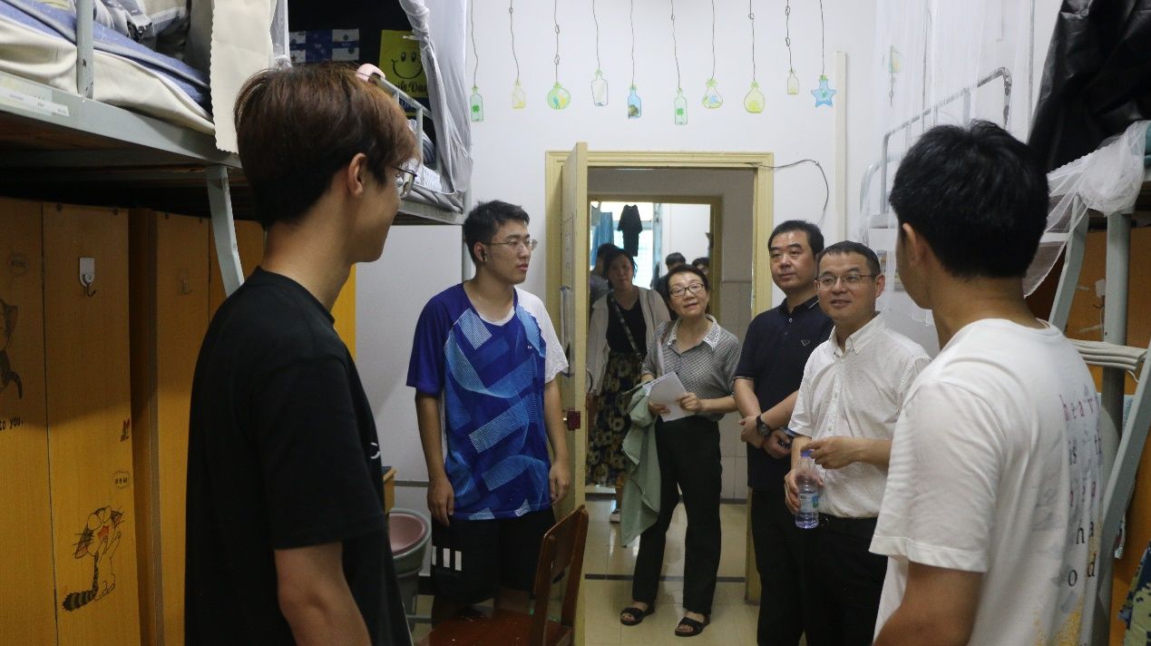下午16:00,经济学院院长石智雷、党委副书记俞凡、学生工作办公室主任周琼、2024级辅导员孟庆红老师、沈鹏飞老师一同走访了新生宿舍,了解宿舍环境及新生报到情况,同时与新生及家长们进行了亲切交流。在走访过程中,石智雷院长代表学院对新生们致以关心与慰问并与新生们交流初入大学的感触,勉励新生们努力学习,同时祝愿他们能够在本科四年中收获满满、更上一层楼。