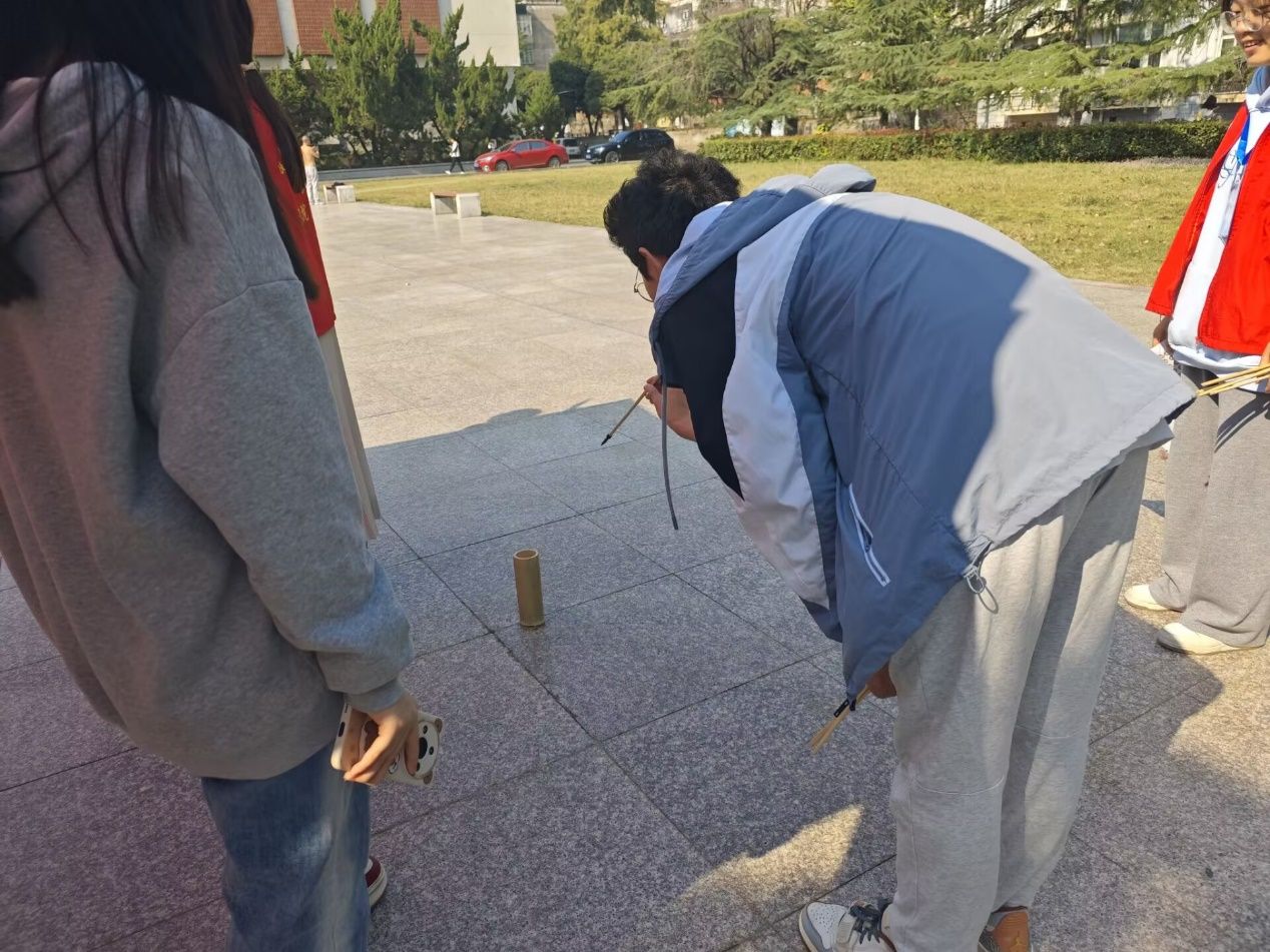 活动开始前,志愿者们提前集合完毕,领取了提前清点并整理好的物资,来到了活动地点——首义广场,紧锣密鼓地完成了活动摊点的布置。秋高气爽,阳光明媚,志愿者们神采奕奕,投壶、猜谜、飞花令——中国传统小游戏同样也泛着古人的智慧之光,等待着同学们的到来。