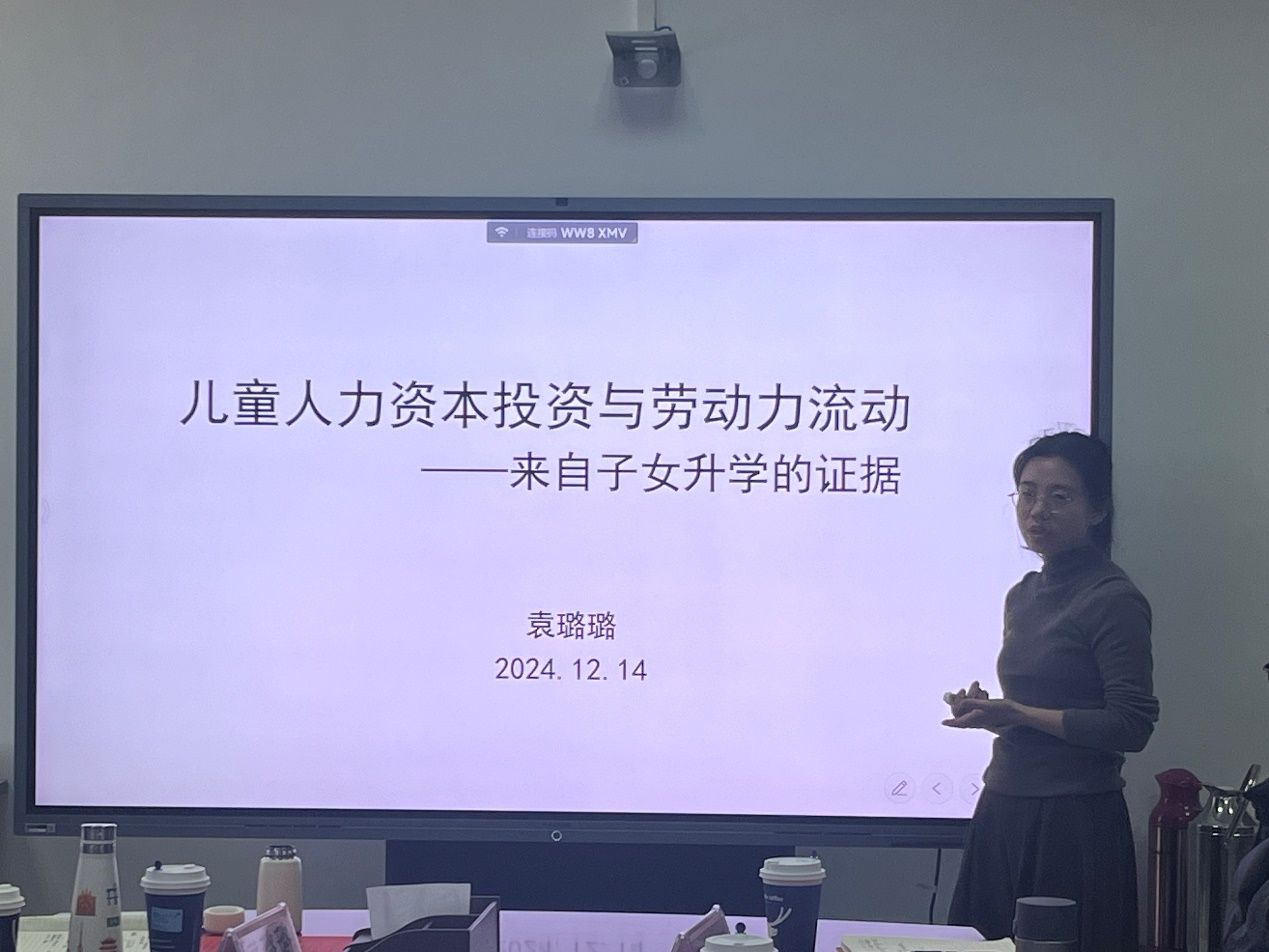 袁璐璐博士以“儿童人力资本投资与劳动力迁移”为题,通过实证研究揭示农民工家庭的劳动力流动对儿童教育和健康的深远影响,并提出优化资源配置的政策建议,以促进儿童全面发展。