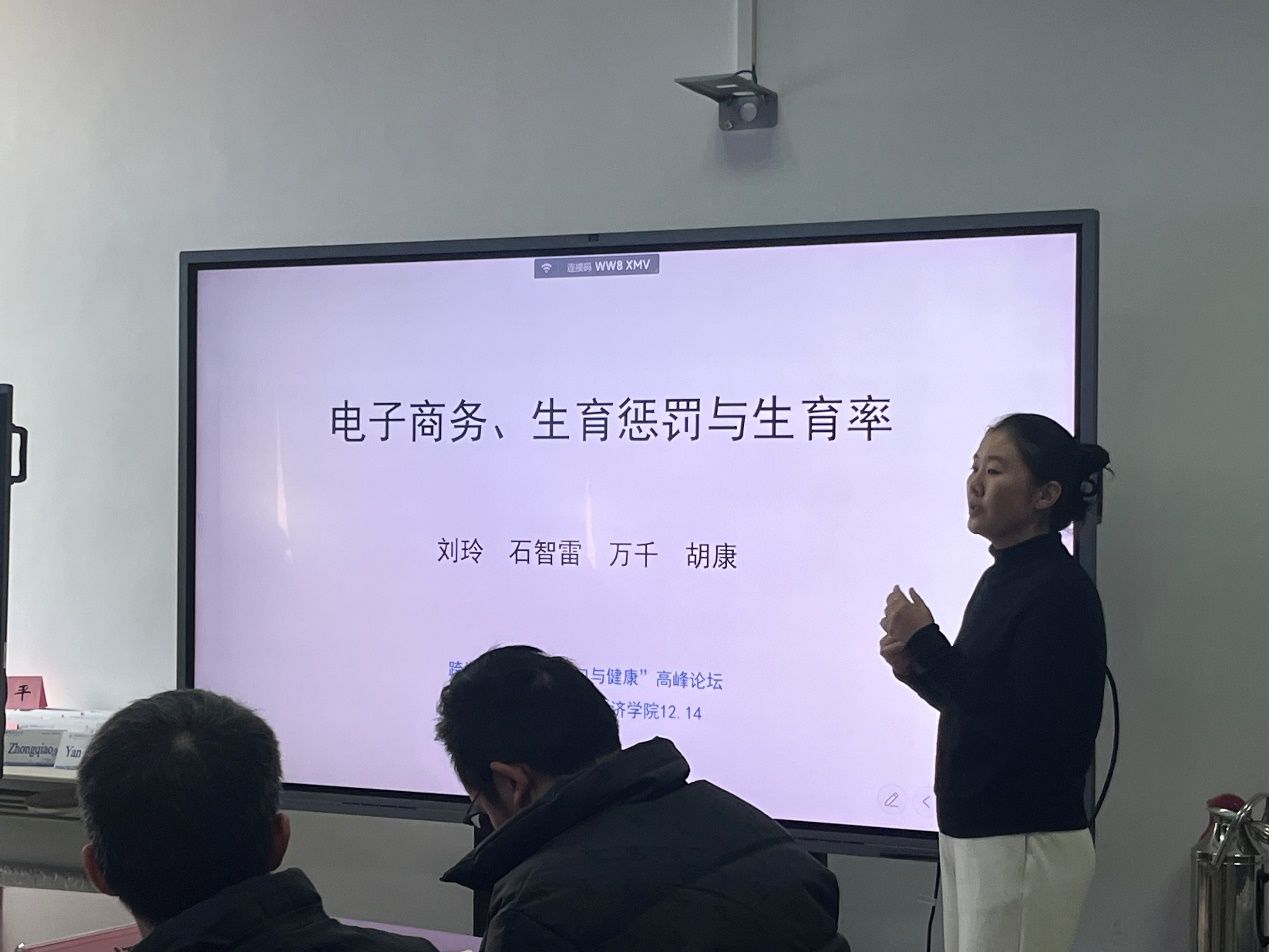 主题发言环节中,四位学者分别就相关议题进行了深入探讨。刘玲博士以“电子商务、生育惩罚与生育率”为题,分析了电子商务对女性就业机会和生育决策的影响,提出电子商务在一定程度上缓解了“生育惩罚”问题,但其长期效应有待进一步研究。