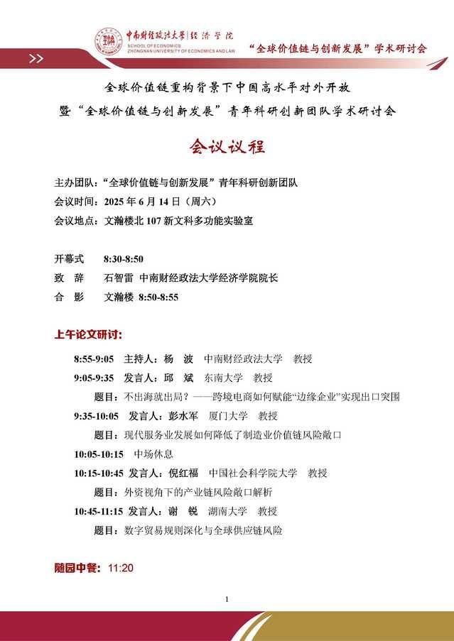 【学术会议】全球价值链重构背景下中国高水平对外开放暨“全球价值链与创新发展”青年科研创新团队学术研讨会