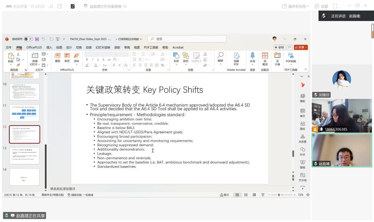 赵嘉靖老师以“The Paris Agreement Crediting Mechanism: Policy Evolution”为主题,主要探讨了市场机制的起源、巴黎协定下的新市场机制PACM及其政策演变;同时,总结了市场机制从京都议定书到巴黎协定的变化,以及新市场机制PACM的关键政策转变,为理解PACM提供了全面的视角。与谈人杨柳青青副教授和曾盈盈副教授分别就PACM关键政策中对个体或私营实体企业方面的细节和程序等问题与赵嘉靖老师展开深入讨论。