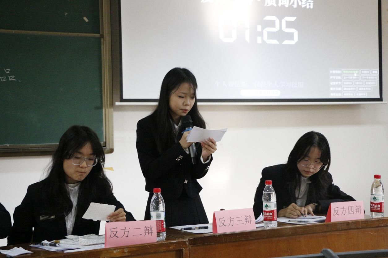 (学生记者 张益嘉 摄影 周佳怡)唇枪舌剑论天下,思辨交锋展锋芒。为了在观点碰撞中拓宽认知边界,在逻辑交锋中锤炼思辨能力,经济学院第十九届“经英杯”辩论赛决赛于2025年11月22日15时在首义校区文润楼306教室举行。本次辩论赛由经济学院2024级学生李东谕主持,经济学院2025级全体本科生到场观看。
